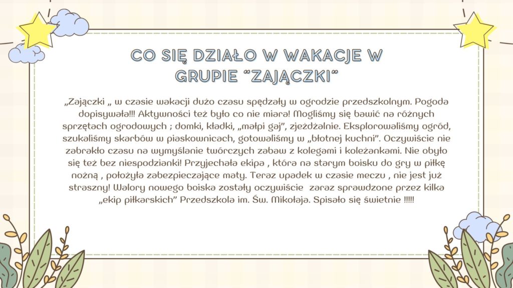 Co się działo w wakacje w grupie „Zajączki” :-)